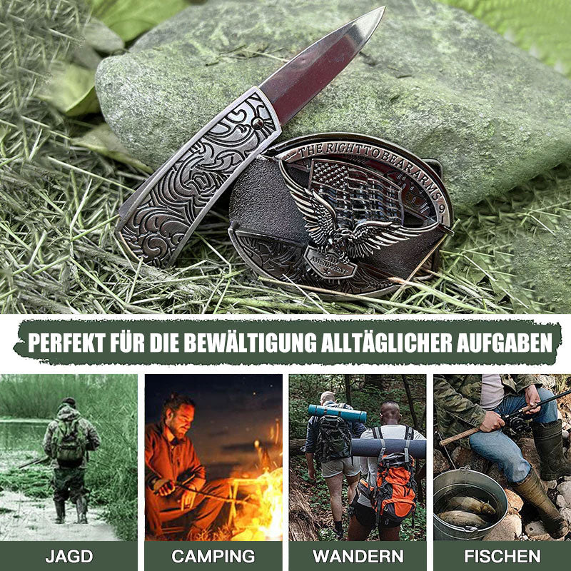 Discreetly integrated into the belt buckle, the concealed knife adds a layer of utility rarely seen in fashion accessories. Razor-sharp and securely stored, it's perfect for camping, hiking, fishing, or unexpected emergencies. A true EDC (everyday carry) essential — right on your waist.